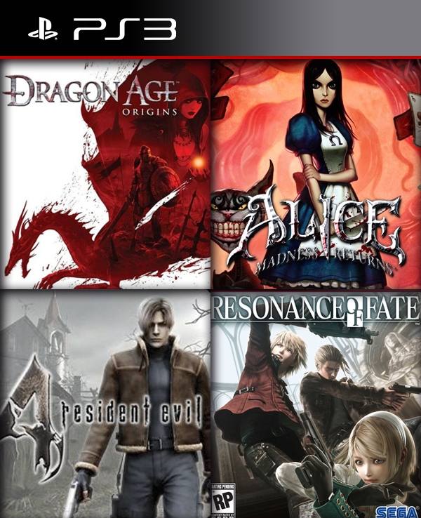 4 juegos en 1 Resonance of Fate mas Resident Evil 4 mas Alice: Madness Returns mas Dragon Age: Origins ps3